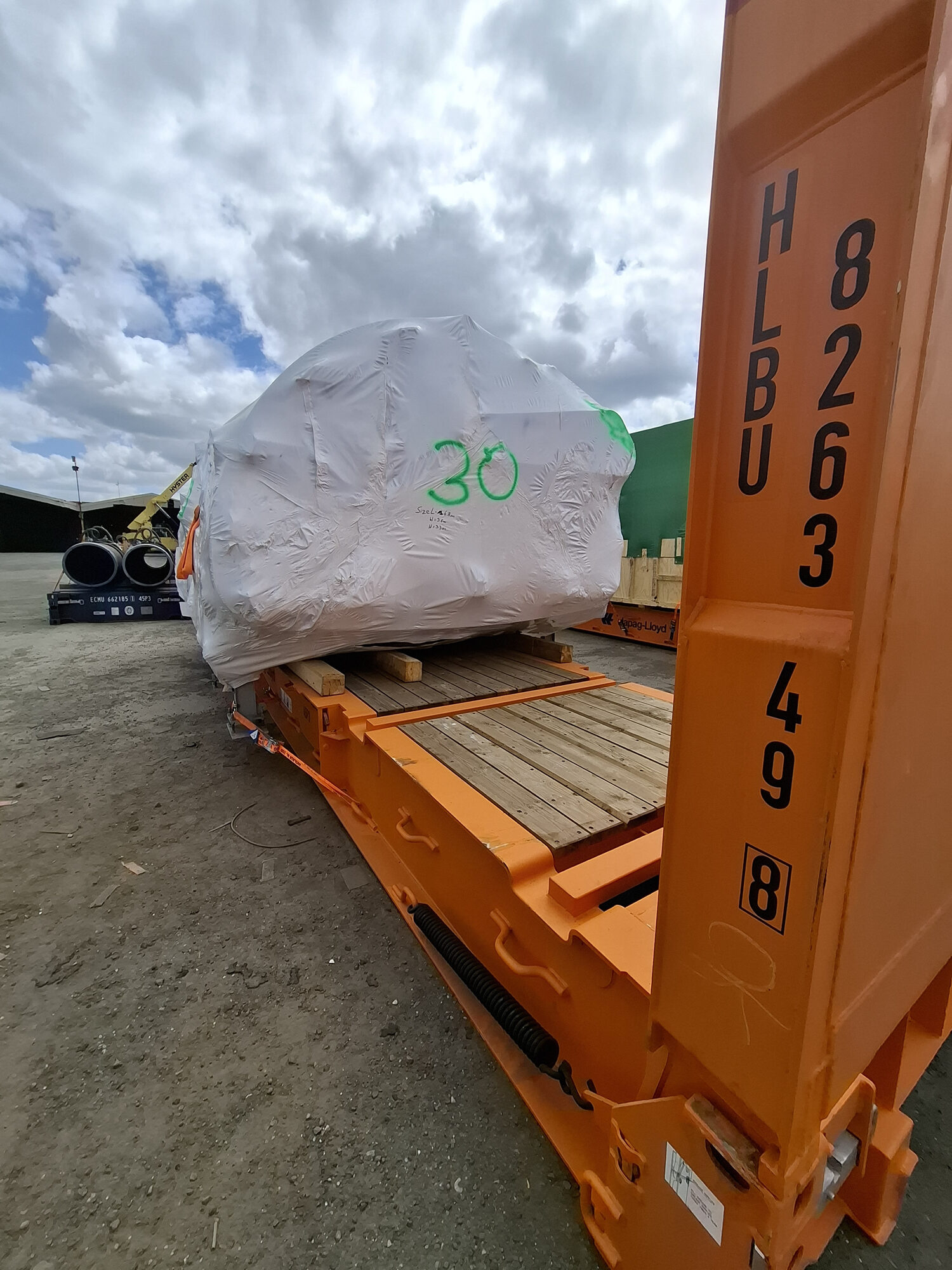 The project involved packing 115 individual items into a mix of standard containers, open tops, and two oversized auto-clave sections shipped as OOG flatracks. Particular care was taken by our on-site packing team to optimise container space and reduce the total number of containers, delivering cost efficiency for the customer. Working within an active factory environment, the team overcame challenges to minimize disruption to daily operations while maintaining strict safety standards.